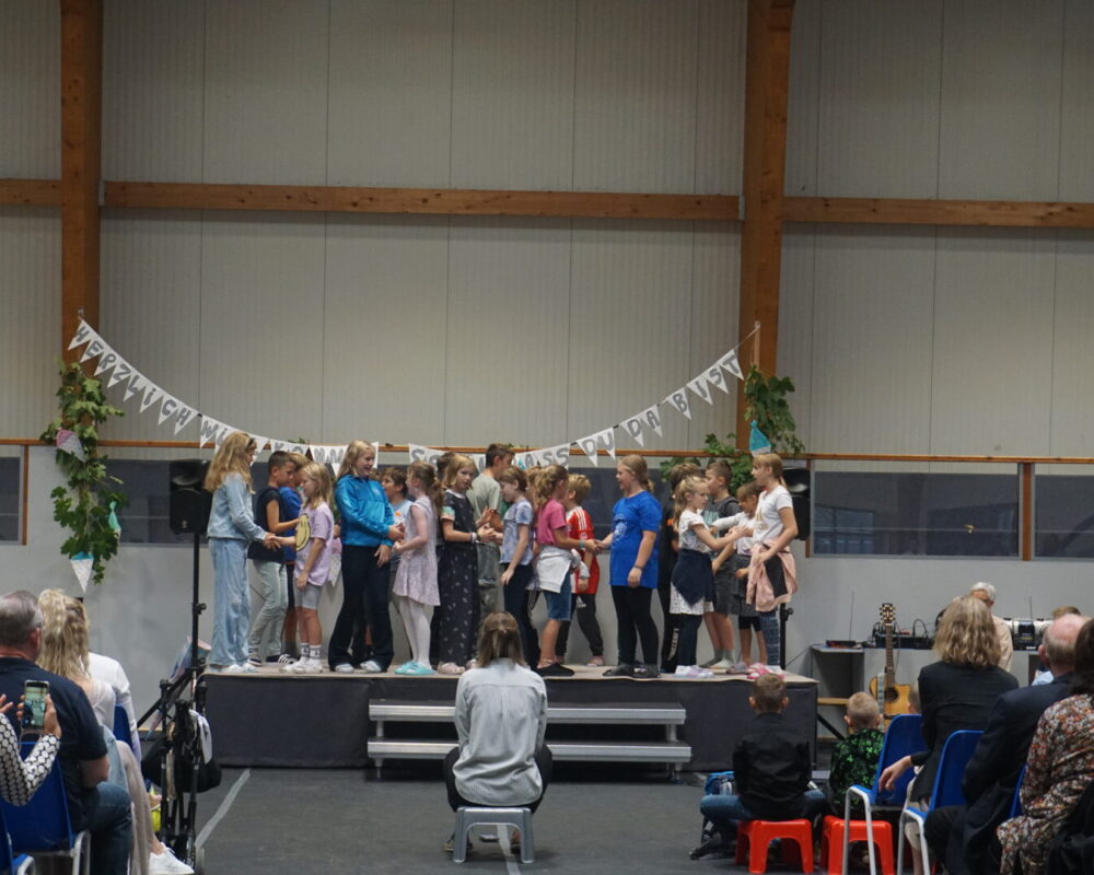 Um 14 Uhr ging es nach einer Pause zu unserem Treffpunkt am Schwimmbad. Begleitet von dem Spielmannszug Satrup machten sich alle Kinder der Schule mit Blumenstöcken und hübsch gekleidet auf den Weg durch das Dorf. Angekommen an der Turnhalle folgte die Polonaise und ein Schultanz. Zum ersten Mal sang auch der Chor unter der Leitung von Frau Roggensack für uns. Nach der Begrüßung von Frau Tusché startete die Party in der Halle mit einem DJ und allerlei Programm. Unter anderem präsentierte der 4. Jahrgang noch seinen diesjährigen Abschlusstanz. Zum Ende des Tages wurde – wie schon vor 60 Jahren – das Lied “Kein schöner Land” mit allen kleinen und großen Gästen gesungen. Begleitet wurde dieses Abschlusslied von den Ukulelen unter der Leitung von Frau Ohlsen.