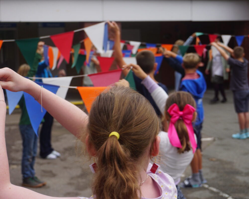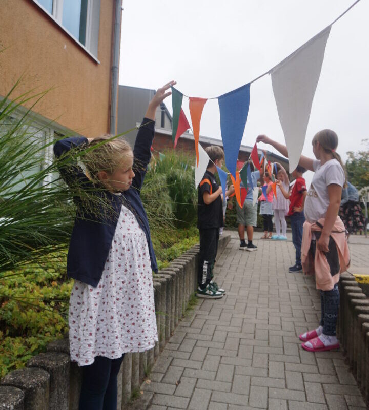 Am Freitag stimmte sich die Schule in der Schulversammlung auf die Fußball EM und die kommenden Wochen ein. Jede Lerngruppe hatte sich im Vorfeld mit einer Gruppe beschäftigt und präsentierte die europäischen Länder mit ihren Flaggen. Gemeinsam wurde die Torhymne “Major Tom” gesungen. “Völlig losgelöst” war die Stimmung und alle freuten sich auf den Fußballabend, an dem Deutschland gegen Schottland im Eröffnungsspiel gegeneinander spielte. Überrascht wurden die Kinder von Frau Lysenko, die uns die ukrainische Nationalhymne präsentierte und gemeinsam mit einigen Kindern vorsang. Vielen Dank für diesen besonderen Moment!