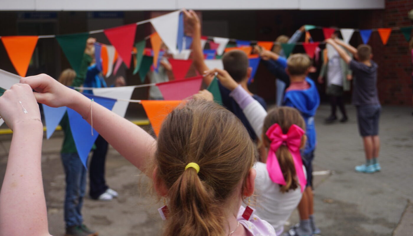 Frisch umgezogen und mit Blumenstäben in der Hand konnte man die Kinder der Schule um 14 Uhr am Sieverstedter Freibad treffen. Hier wartete auch der geschmückte Trecker auf die Königspaare. In diesem Jahr durften wir uns auch endlich wieder über einen Spielmannszug, den SFZ Satrup, freuen. Ein großes Dankeschön geht an dieser Stelle an Yvonne, die sich dafür eingesetzt hat, dass diese alte Tradition wieder aufleben konnte. Gemeinsam zogen alle fröhlich durch das Dorf und trafen sich zur Polonaise und einem Tanz in der Turnhalle. Danach wurde weiter getanzt und viel gelacht. Neben dem Kinderschminken, das von ehemaligen Schülern und Schülerinnen organisiert wurde, durften sich alle über einen Eiswagen, ein buntes Programm des DJs Jan Kröning (www.muemak.de) und vieles mehr freuen. Ein besonderer Dank geht auch an die Jugendfeuerwehr, die zum Abschluss des Tages für uns grillte. Um 18 Uhr wurde der Tag mit dem Lied “Kein schöner Land” beendet, das von Kindern aus der Keyboard und Ukulelen AG begleitet wurde.