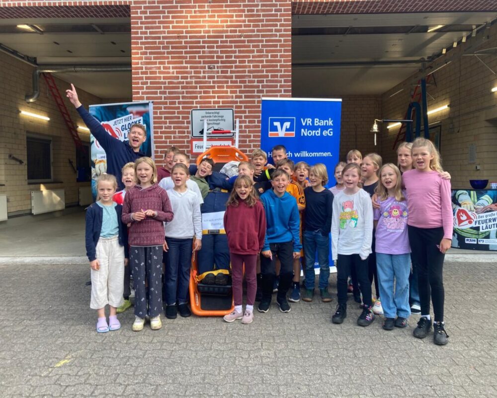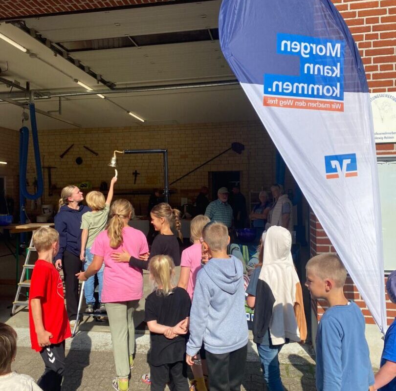 Am 9. September, dem zweiten Schultag nach den Sommerferien, durften wir Teil der großen R.SH Aktion “Feuerwehr läuten” sein. Bei dieser Aktion, die von den Volksbanken Raiffaisenbanken und R.SH ins Leben gerufen wurde, erspielte sich die Freiwillige Feuerwehr Sieverstedt – Stenderup eine neue Übungspuppe. Mehr als 1000 Menschen aus der Umgebung kamen zwischen 7 und 17 Uhr vorbei um zu helfen. Mindestens 500-mal musste die Glocke geläutet werden um den Wunsch der Feuerwehr zu erfüllen. Aufgrund der großen Unterstützung konnte das Ziel bereits gegen Mittag erreicht werden. Wir freuen uns, dass die Kinder aus der Schule im Autal dazu beitragen konnten und gratulieren der Freiwilligen Feuerwehr Sieverstedt – Stenderup zu ihrer neuen Übungspuppe!