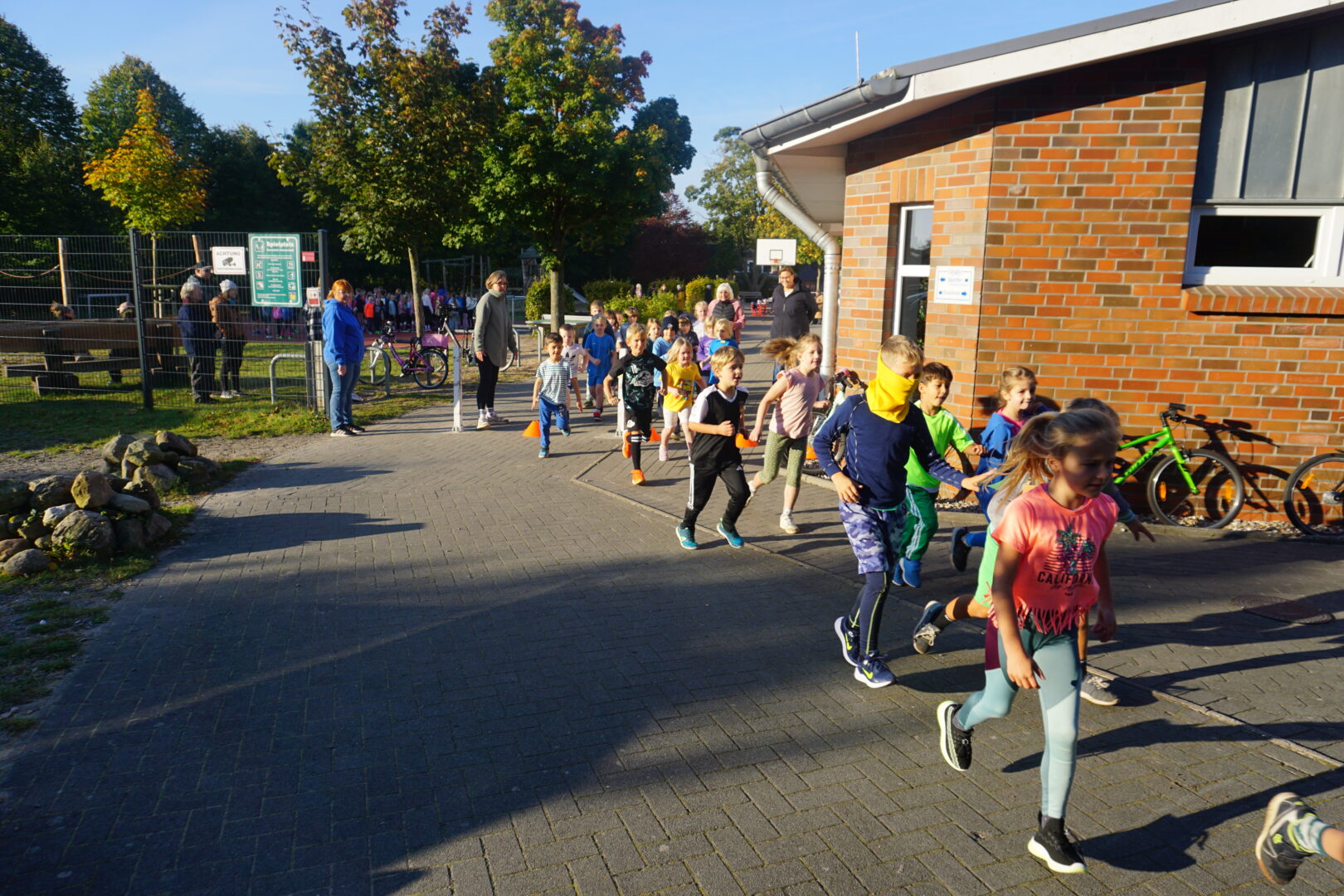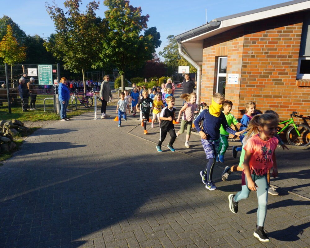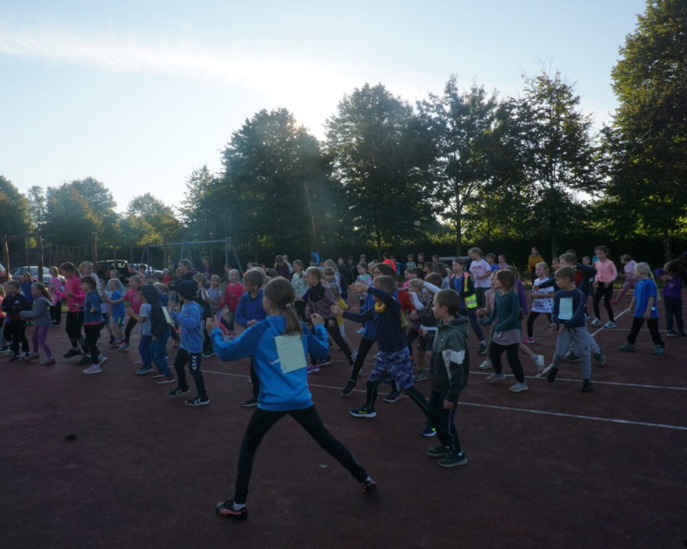 Bei schönstem Herbstwetter fand am Mittwoch, 2. Oktober der alljährliche Lauftag an der Schule im Autal statt. Auf den neuen Laufstrecken ging es um 9 Uhr mit einem gemeinsamen Aufwärmen auf dem Sportplatz los. Alle waren hochmotiviert und hatten sich zum Ziel gesetzt so viele Runden wie möglich zu schaffen. Im Vorfeld hatten die Kinder Sponsoren gesammelt, die für jede gelaufene Runde einen Betrag zwischen 10 Cent und 2 Euro spenden wollten. In diesem Schuljahr hat der Kinderrat gemeinsam mit dem Team der Schule beschlossen für eine “Umrandung unseres Fußballfeldes” zu laufen. Außerdem wird ein Betrag von 200 Euro an einen guten Zweck gespendet.