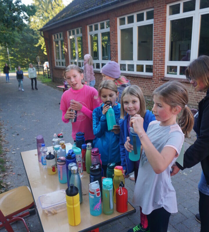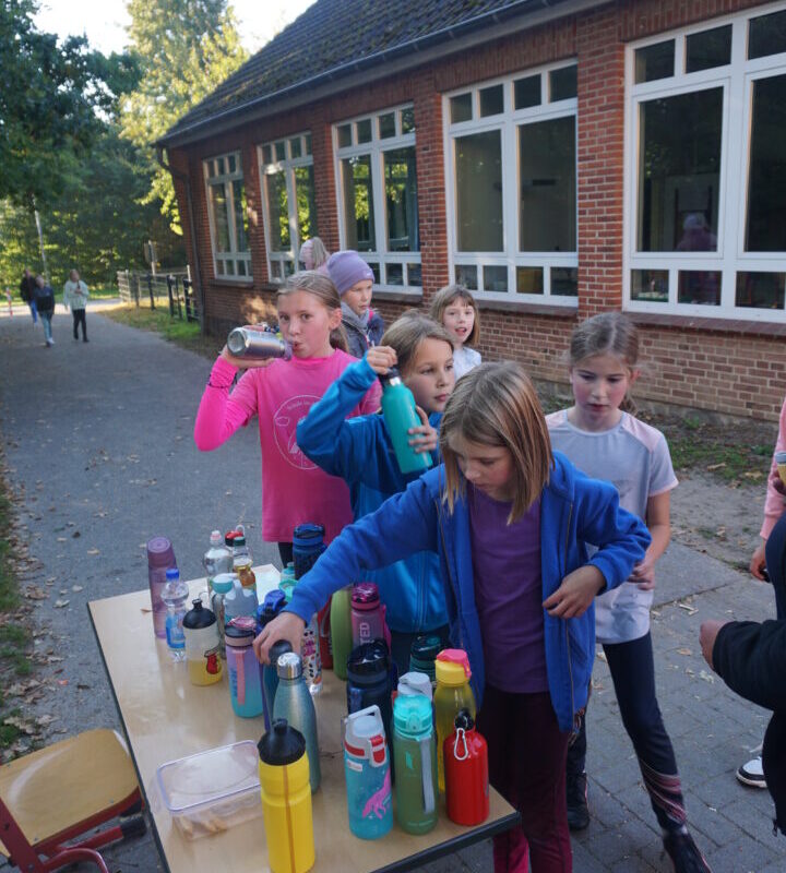 An einem weiteren Tag machte sich jede Lerngruppe auf den Weg durch das Dorf. Mit dem Ziel ein Bewusstsein für Umweltschutz und nachhaltige Entwicklung zu fördern, sammelten die Kinder in Sieverstedt und Umgebung Müll und sortierten diesen im Anschluss auf dem Schulhof.