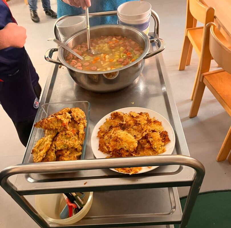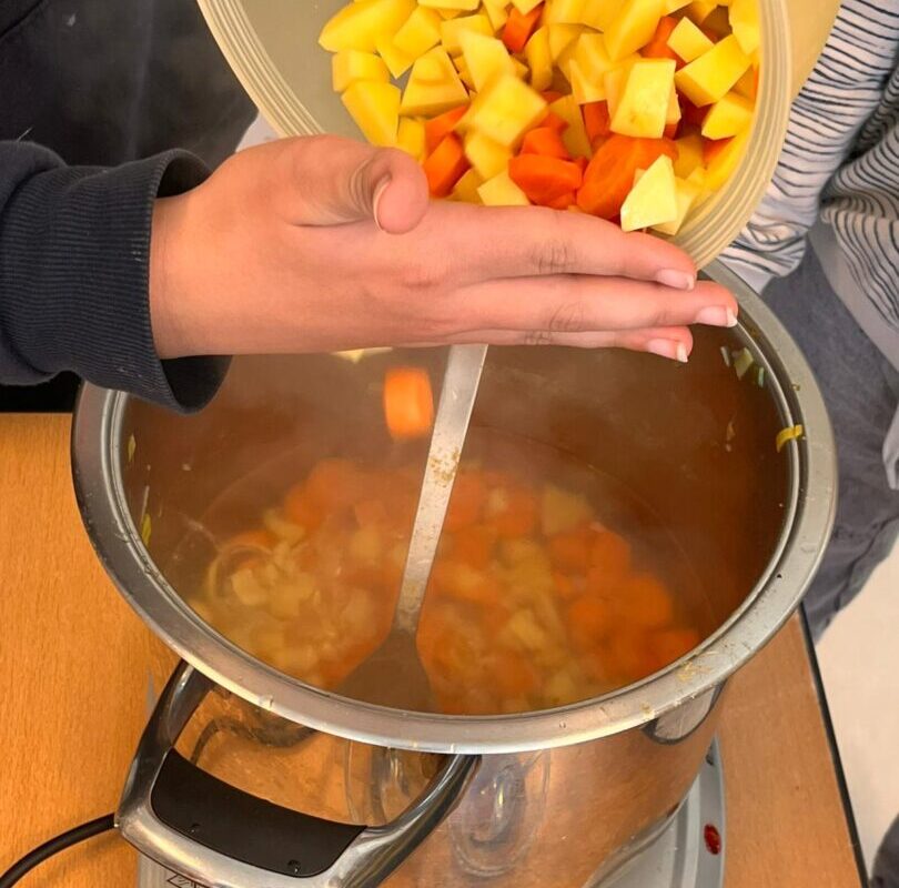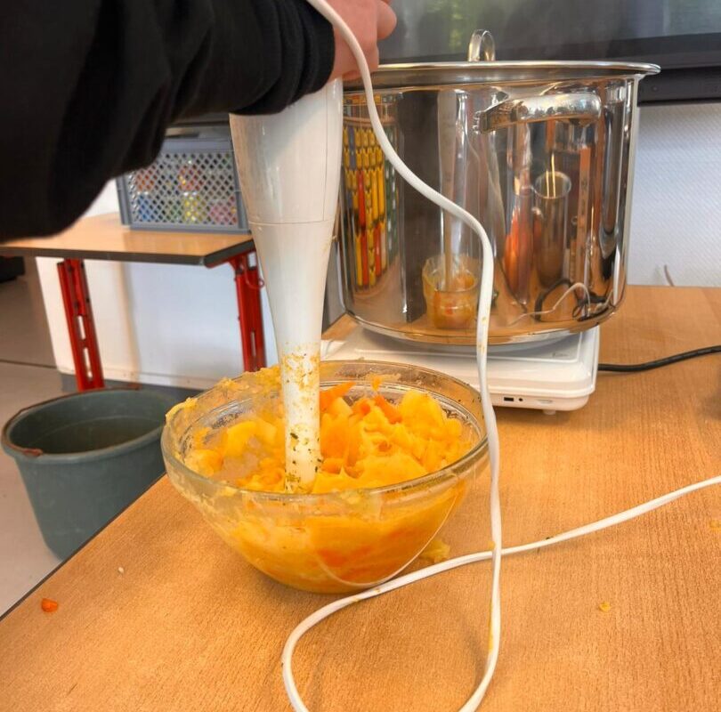 Am Mittwoch fand im Rahmen unserer Vorhabenwoche ein Kartoffeltag an der Schule im Autal statt. Alle Lerngruppen probierten sich an verschiedenen Kochstationen aus, die von Frau Hollesen und einigen anderen Eltern begleitet wurden. So kochten die Kinder eine köstliche Kartoffelsuppe, Kartoffel- Gemüsetaler und Reibeplätzchen. Es duftete über den gesamten Schulhof und alle freuten sich über die besonderen Leckereien. In der Turnhalle durfte sich außerdem jede Lerngruppe an einem “Kartoffel Parcours” ausprobieren. Auf einem Löffel wurde die Kartoffel über Hindernisse transportiert. In den Lerngruppenräumen lernten die Kinder die Kartoffel noch besser kennen. Sie beschäftigten sich unter anderem mit der Frage: “Wie sieht eine Kartoffelpflanze überhaupt aus?”und arbeiteten rund um das Thema “Kartoffel”. An diesem Tag wurden alle Kinder zu kleinen und großen Kartoffelexperten :-).